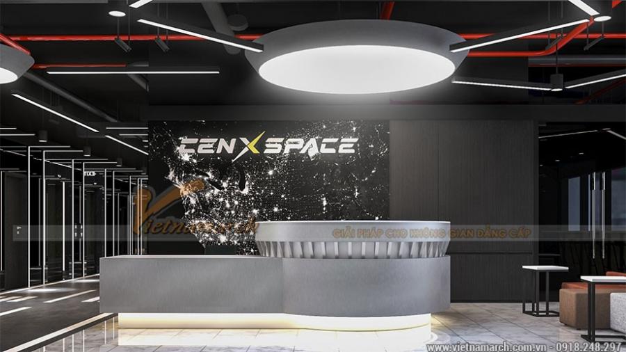 Nằm chính giữa không gian văn phòng rộng lớn là hình ảnh quầy lễ tân màu xám nổi bật giống như hình khối chiếc tàu vũ trụ đang chờ đợi được cất cánh . Ý nghĩa sâu xa của hình ảnh này đây chính là bệ phóng cho doanh nghiệp được thành công nếu thuê chỗ làm tại đây.