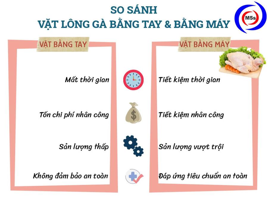 - Sử dụng máy vặt lông gà giúp gia tăng năng suất mà không gây trầy da, gãy cánh, dập mỏ…