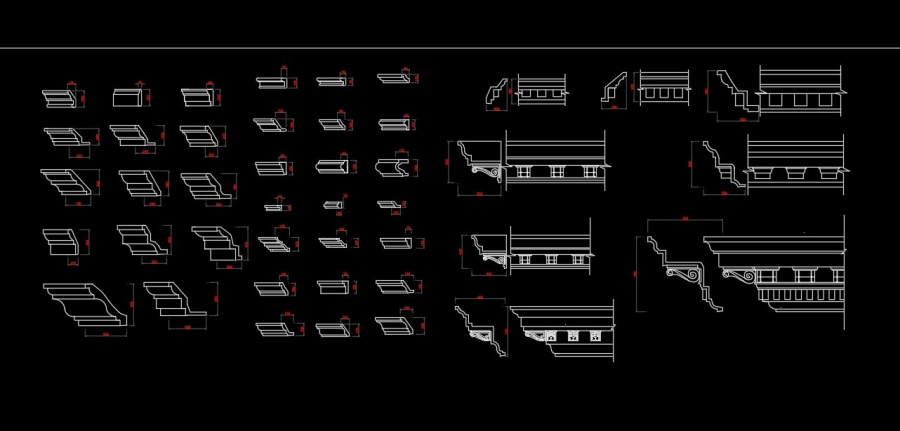 Trong thư viện CAD phào chỉ, bạn sẽ tìm thấy đa dạng các loại phào chỉ như: