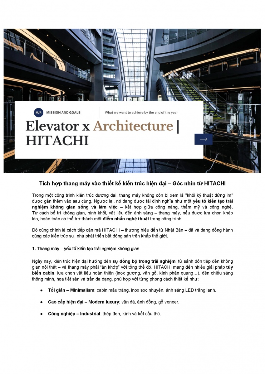 Bài 5- Tích hợp thang máy vào thiết kế kiến trúc hiện đại - Góc nhìn từ HITACHI